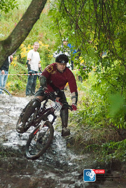 И так, дан старт и все участники по очереди начали делать свои квалификационные спуски, сразу было видно у кого сколько опыта езды в такие погодные условия и первая десятка лидеров была уже очевидна. Соревнования растянулись до 3х часов, дождь не спадал. В таких же условиях начали проводить финальные заезды. Грязь, скорость и упортсво гонщиков только придавали ажиотажу и зрелищности соревнований. Все зрители в ожидании замерли, когда ехали звезды Днепра, Харькова и Крыма, ведь Крымчане намного опытнее в этой велосипедной дисциплине. Но удача была на стороне наших и все первые места забрали Днепропетровчане.