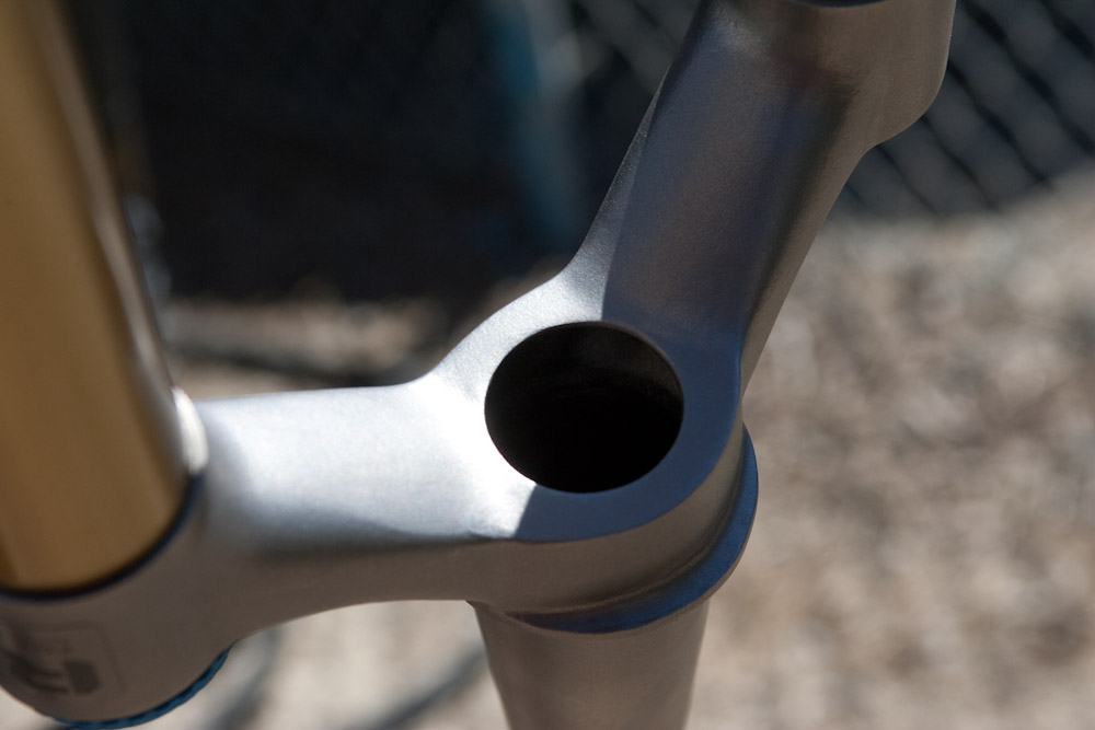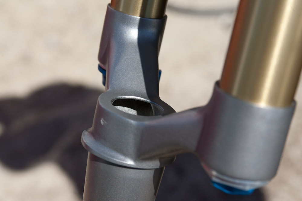 А вот теперь самое интересное. В Fox решено отказаться от использования карбона, заменив его титаном. Прототип этой вилки можно было увидеть на Interbike, а в 2012м Fox Float Ti станет серийной: